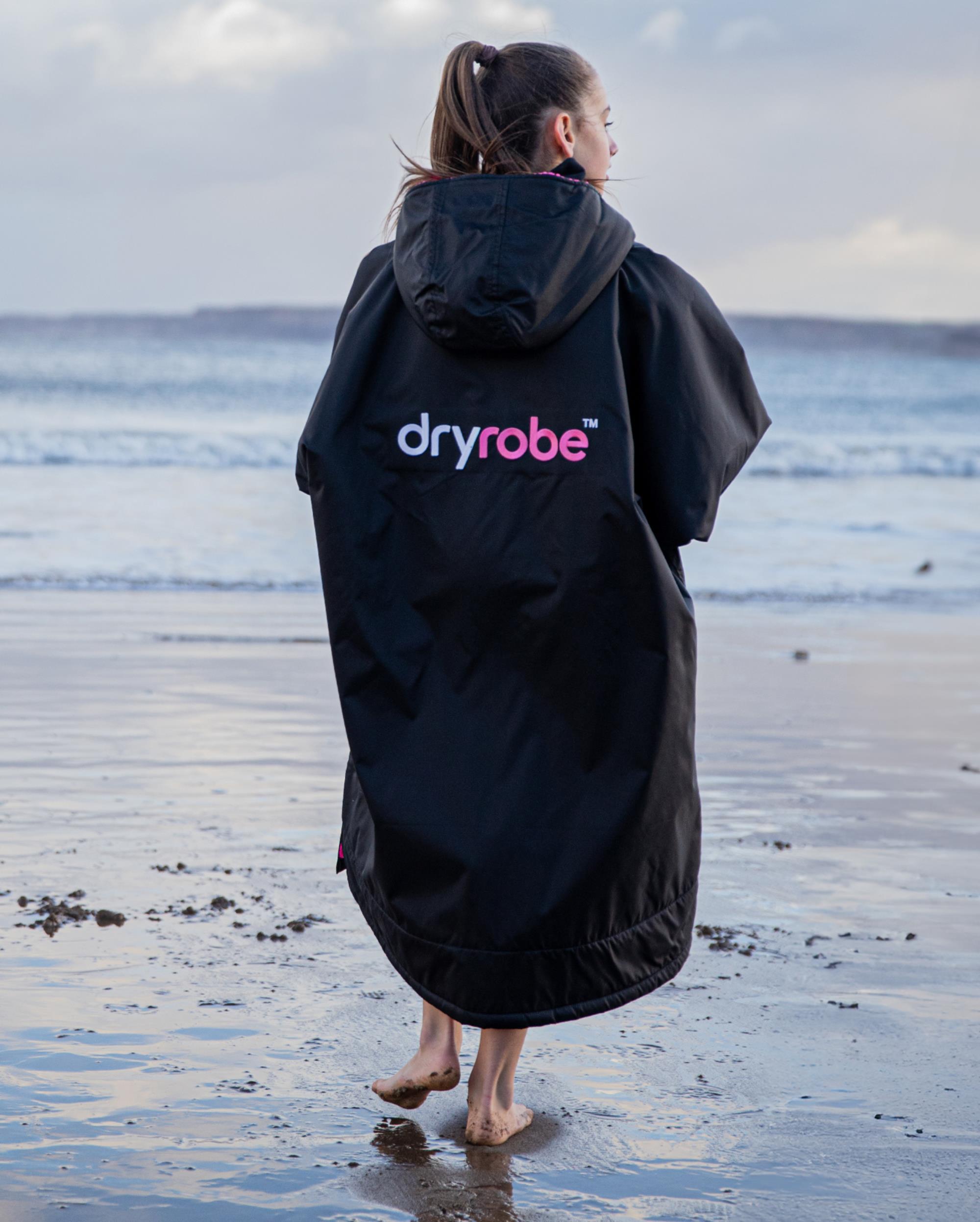 DRYROBE Advance Long Sleeve KIDS SchwarzPink 10-13 wasserdichter unisex Outdoor-Umkleidemantel
