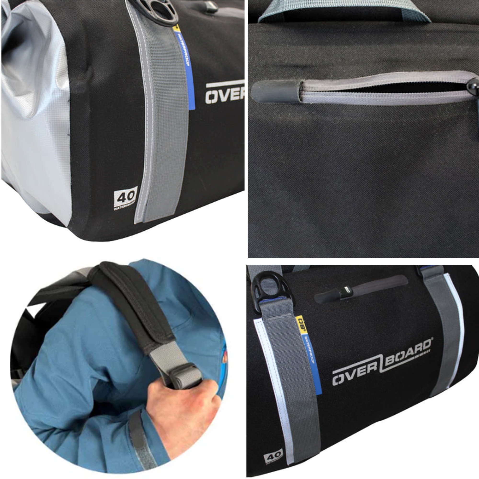 Produktinformationen "OverBoard wasserdichte Duffel Bag 40 Liter Schwarz OB1150BLK Classic mit Rucksackgurten"