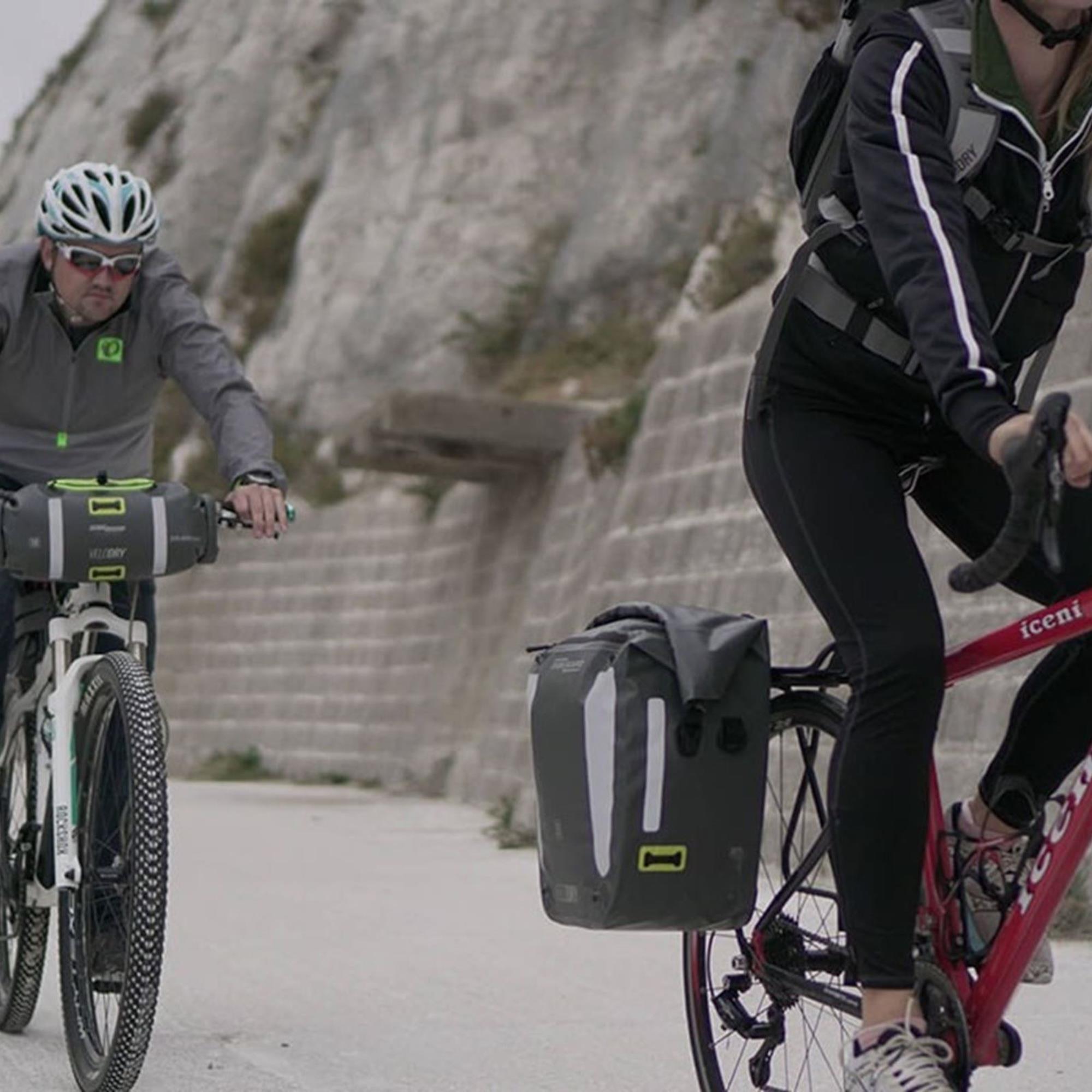 Wenn Sie mit dem Fahrrad unterwegs sind, möchten Sie daß nicht Ihrem Spaß im Weg steht - und Sie möchten sich auf jeden Fall keine Sorgen um Ihre Sachen machen. Holen Sie sich die wasserdichte VeloDry-Lenkertasche mit 10 Litern und halten Sie Ihre Ausrüstung sicher und trocken, unabhängig davon, wohin Ihre Reise Sie führt.