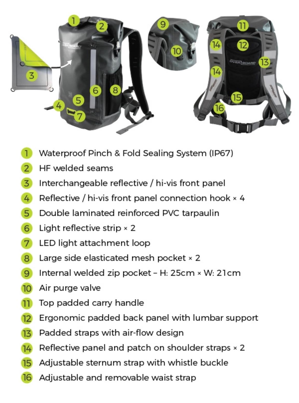 Mit dem VeloDry Waterproof Backpack 20 Liter kannst du überall hin gehen und alles tun, ohne sich um deine Ausrüstung zu kümmern. Mit diesem 100% wasserdichten Rucksack, der eine abnehmbare und austauschbare reflektierende oder Hi-Vis-Frontplatte enthält, können Sie jetzt all Ihre Sachen trocken halten.