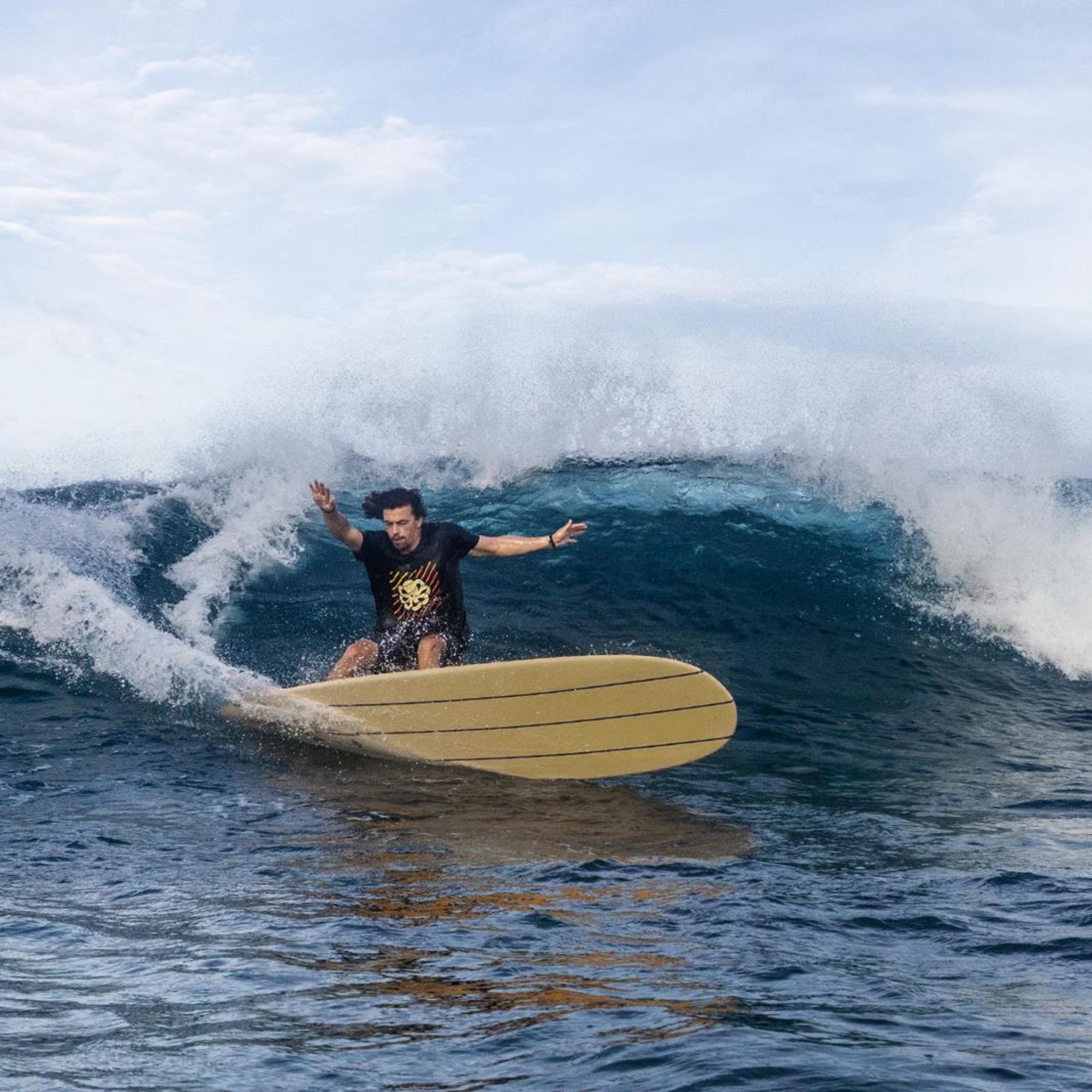 Alain Minvielle hat umfangreiche Shaping-Erfahrung in Kalifornien und ein feines Gespür für den Flow und das Gleiten des klassischen Stils. Zusammen mit Edouard haben sie einen klassischen Shape entwickelt, der von Longboarding-Modellen der 60er Jahre inspiriert ist (keine Kante) und gleichzeitig eine modernere Bottomline hinzufügt, um den perfekten Cruiser mit überraschender Manövrierfähigkeit zu schaffen.