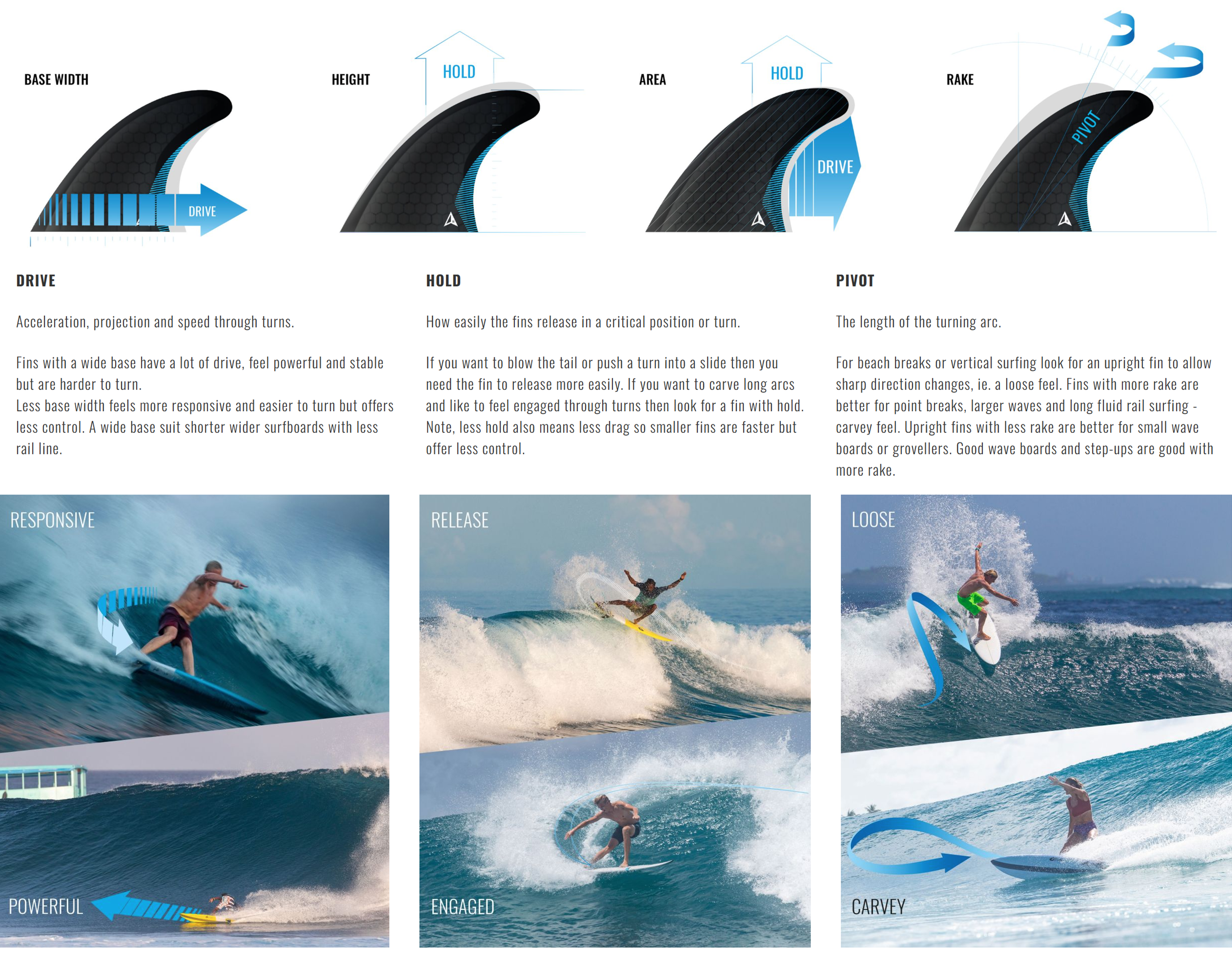 As one of the largest contact surfaces in the water, fins play a crucial role in the performance of a surfboard. Different fin characteristics can significantly influence how a board performs and can be optimised for various wave types, conditions, as well as the size, weight and skill level of the surfer. Fins are a complex topic with many contributing factors. The ROAM Fin Guide explains and illustrates the key aspects.