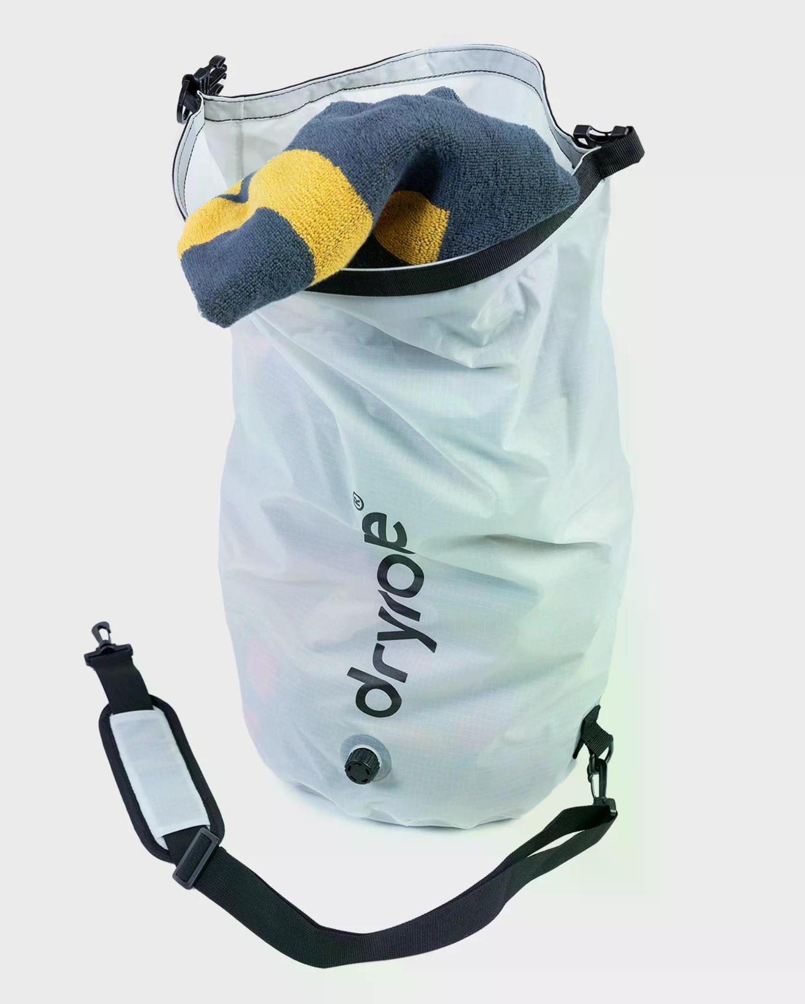Please note that the Dryrobe® Compression Travel Bag cannot be submerged in water. However, its closure is watertight against splashes and rain.