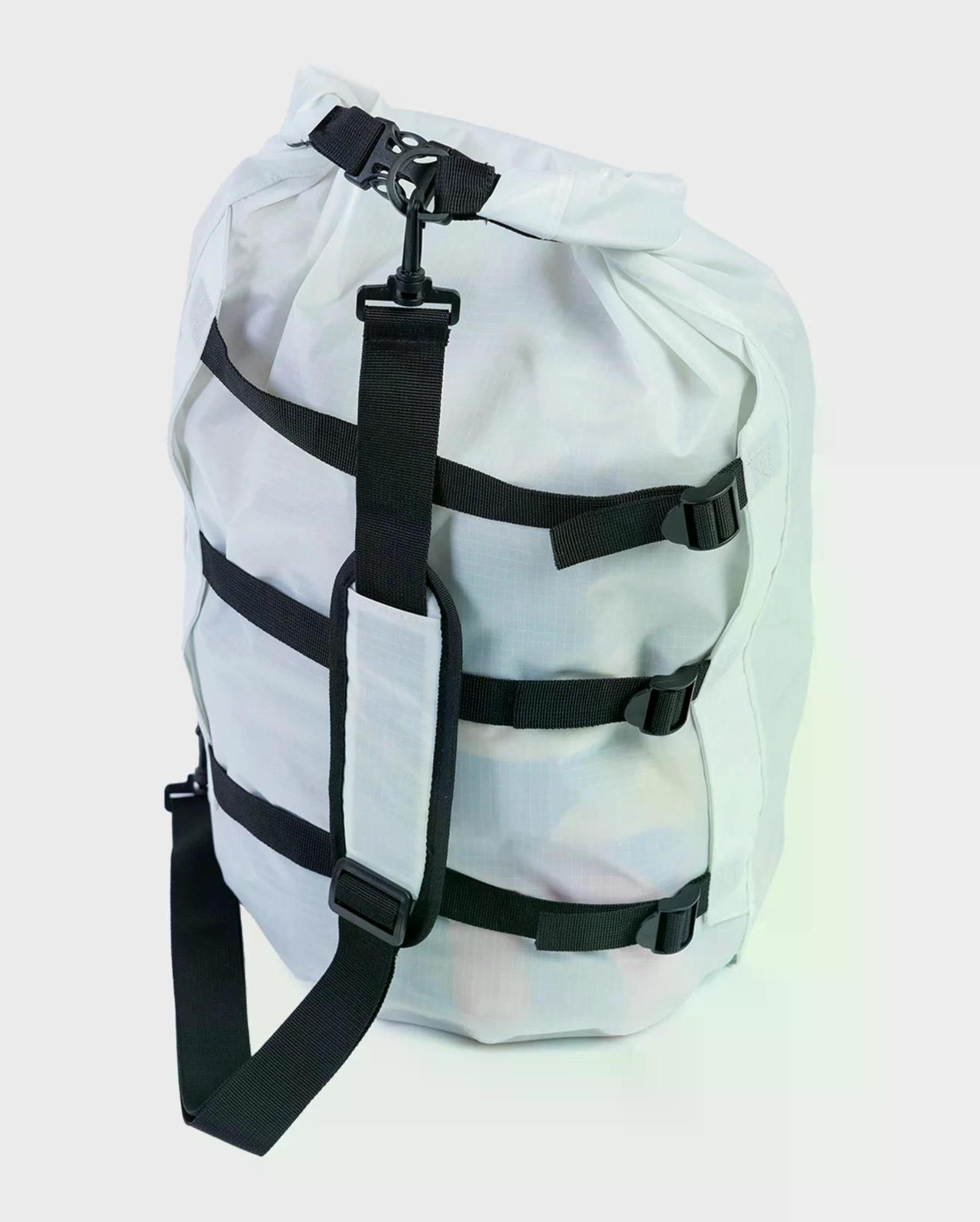 At 60cm long and 30cm wide, the bag will pack down to approx half its size (depending on the tightness of straps and size of Dryrobe®).