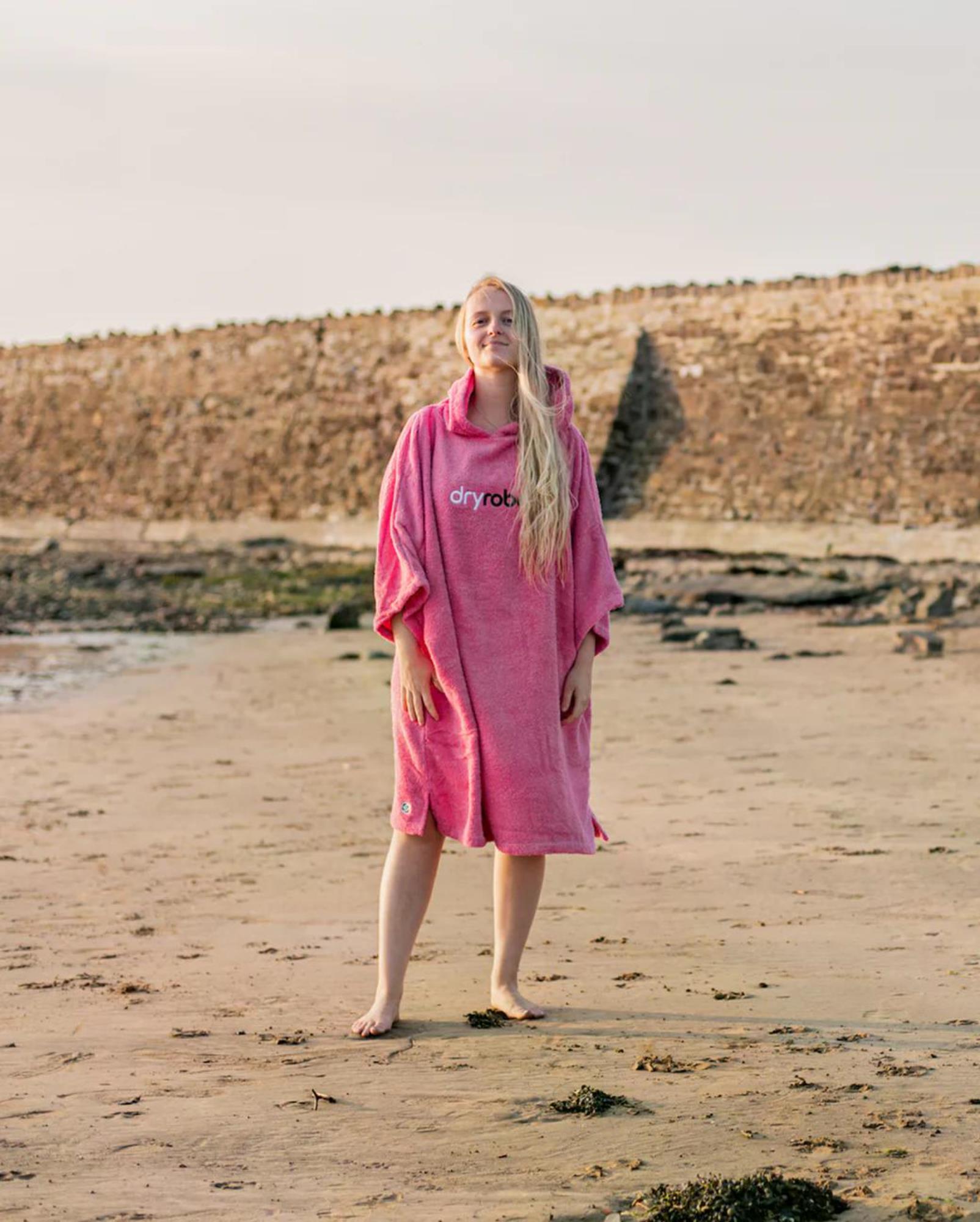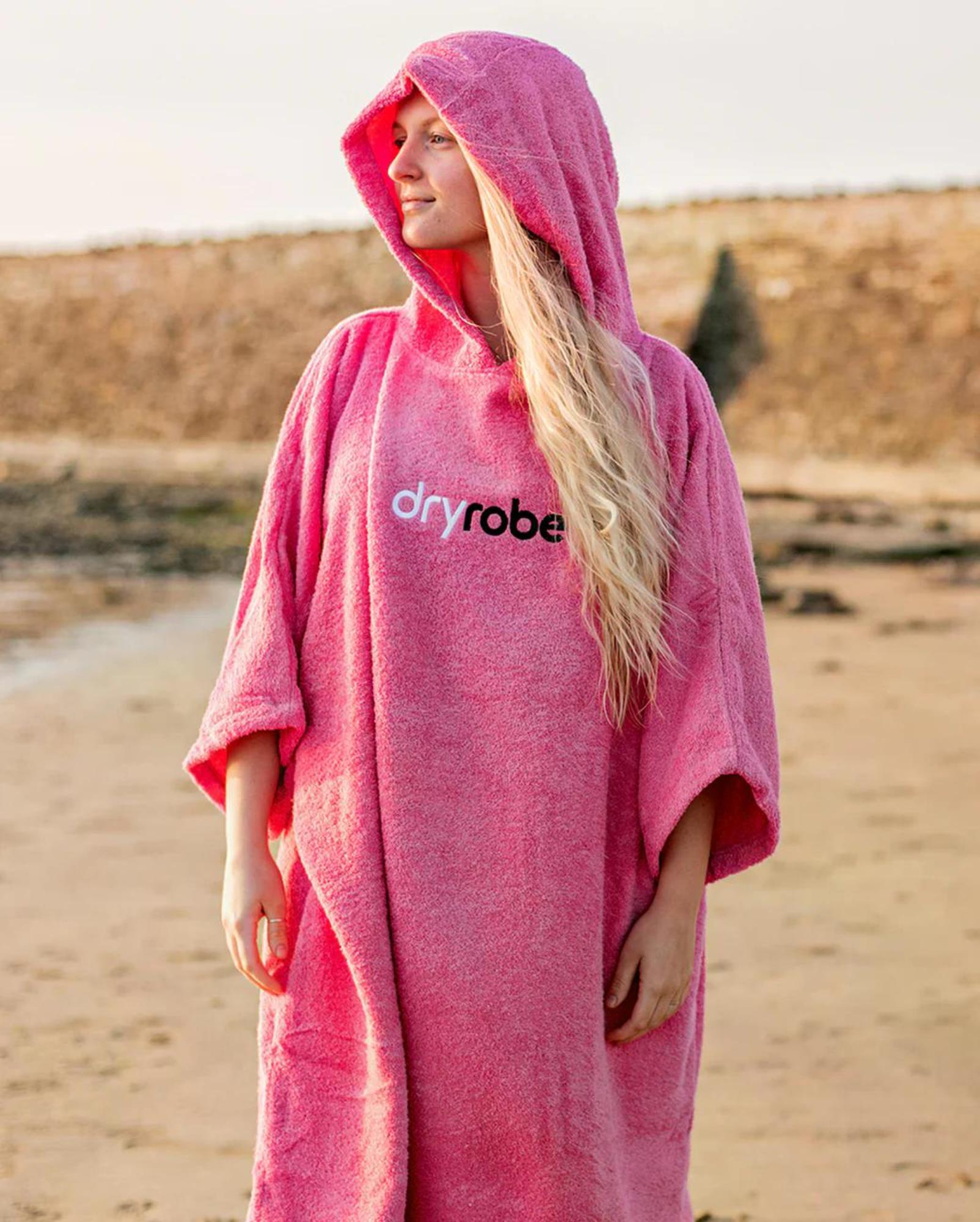 DRYROBE Towel Robe Organic Cotton L Hot Pink Unisex Beach Poncho