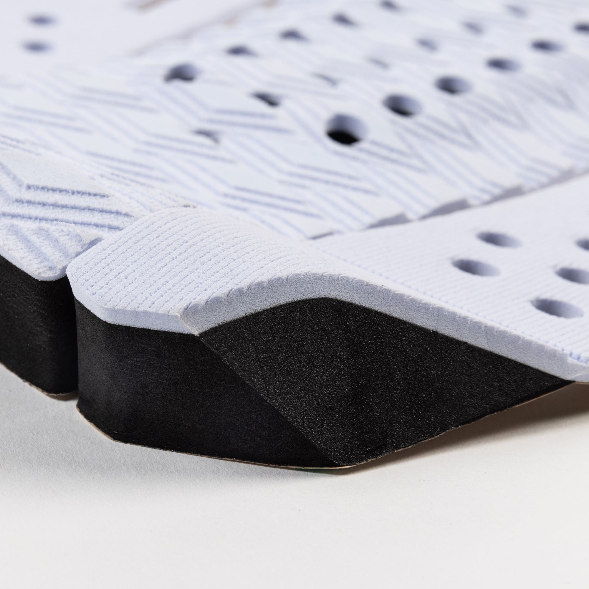 The 3 piece Comp has the shape from the 3 Piece - a super versatile shape we’ve used on almost any performance board or midlength. The texture is from the 3+ Piece pad, to give the most locked in feel, for back footed high performance surfing.