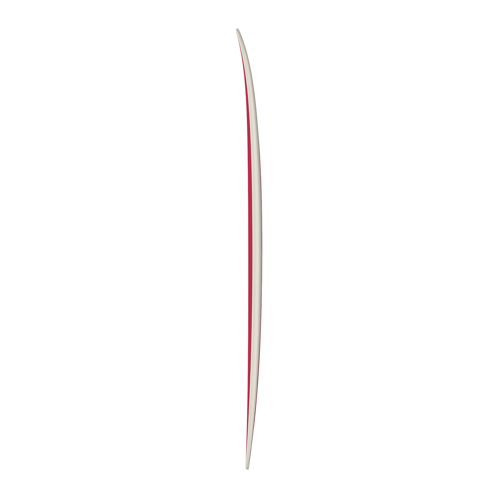 A low entry rocker with slight nose lift, combined with a fast midsection with enough tail release to keep the board fast and loose.